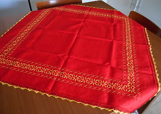 Oggi voglio presentarvi il mio secondo lavoro con la tecnica Deruta sfilato, che mi ha dato molta soddisfazione. Ho faticato un pò a farlo, perchè da noi non ci sono scuole di ricamo ed io imparo sempre da autodidatta da libri e riviste. Ed è molto faticoso, ve lo assicuro!