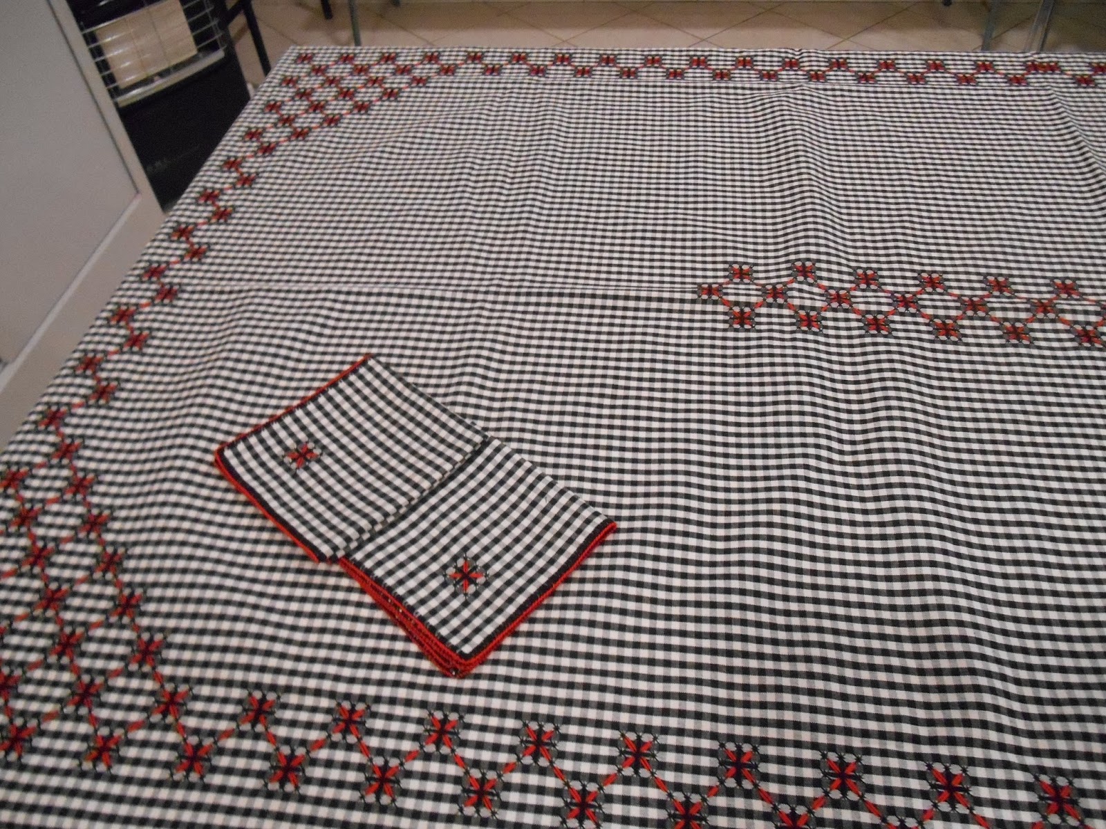 Questa tovaglia a punto svizzero su quadrettato bianco e nero è stata eseguita da Stella con un lavoro di vari mesi, anche perchè i quadretti mettono a dura prova la vista e non si può lavorare in modo continuativo e con scarsa luce. A me piace molto perchè è molto elegante e raffinata. Bravissima Stella!!!